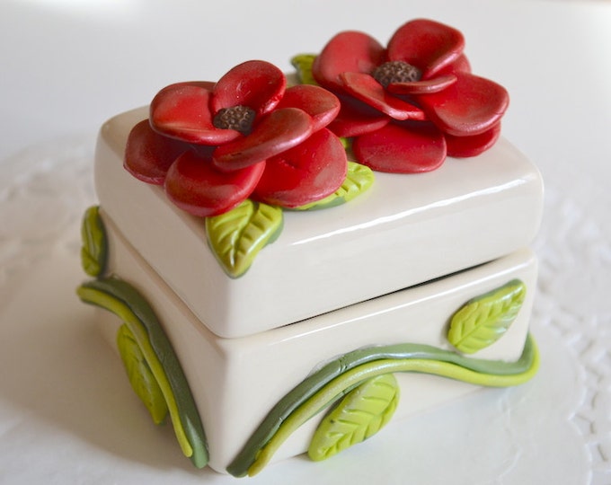 Flower Jewelry Box Polymer Clay Box Ring Box Trinket Box Ceramic Gift