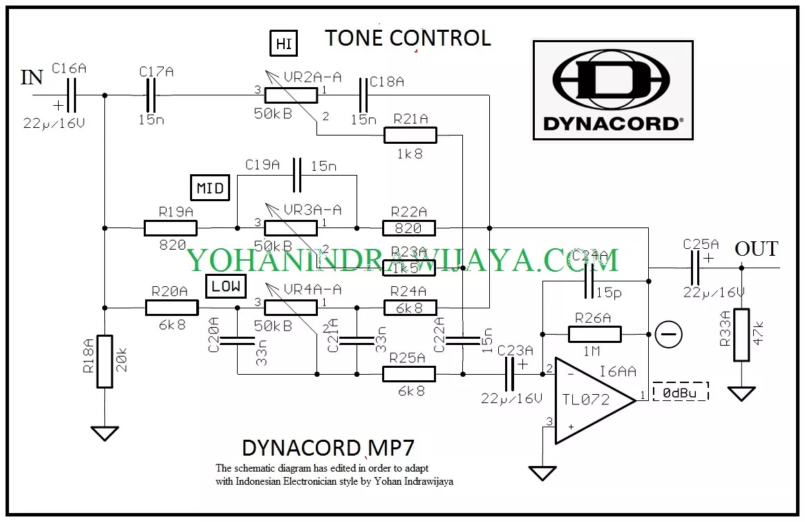 3 POT TONE CONTROL DYNACORD MP7 POWERED MIXER AUDIO SCHEMATICS