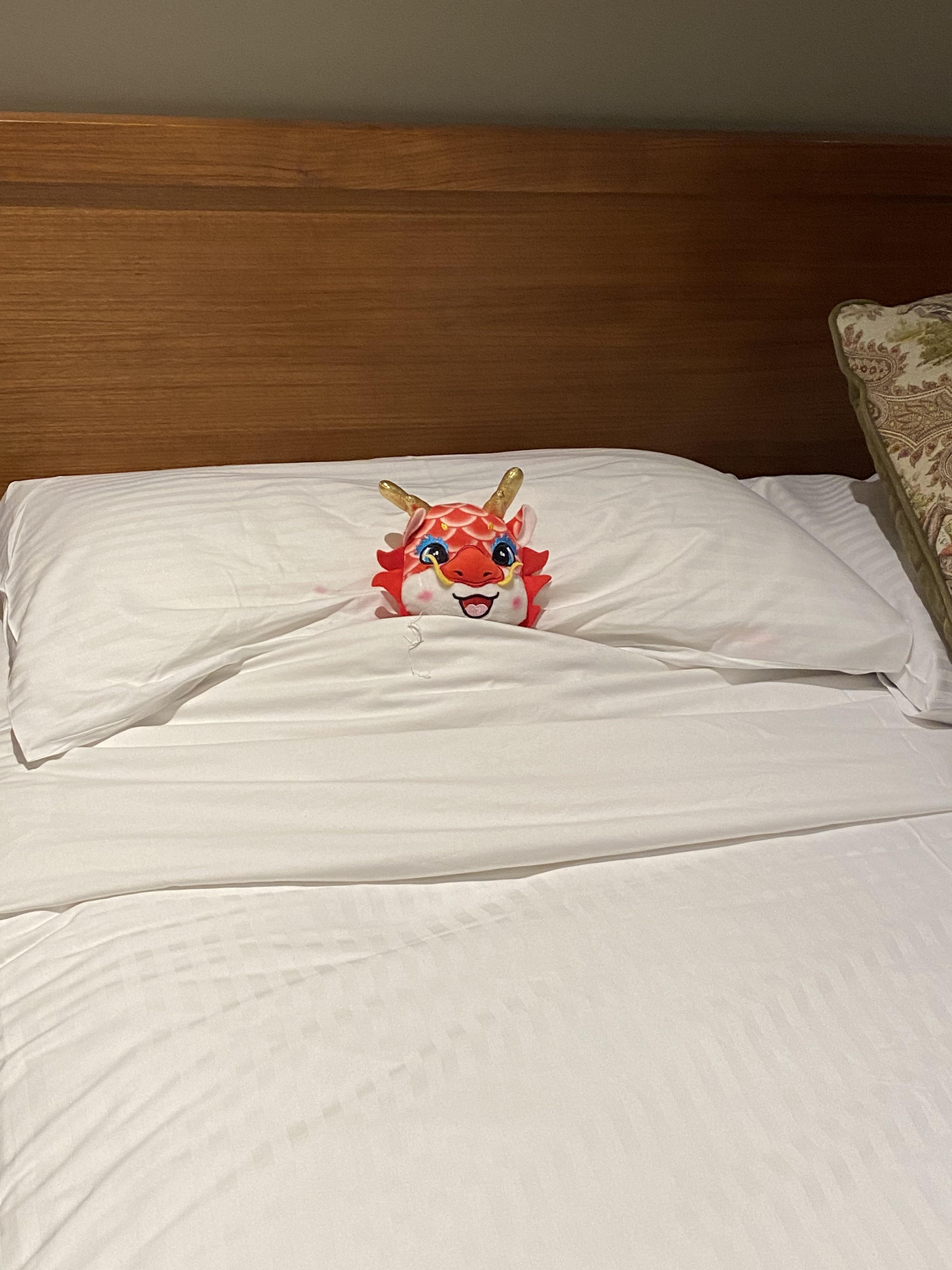 The cleaners at the hotel tucked in my little guy when they made my bed