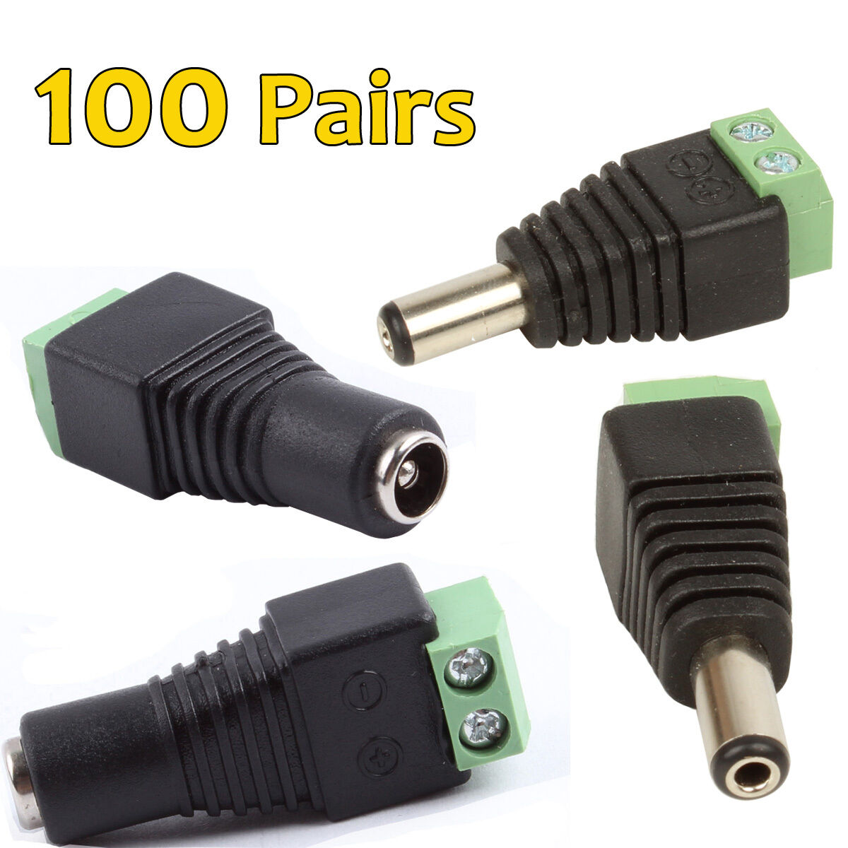 100 Pairs (200pcs) Male and Female DC Power Plug Jack Adapter Connector