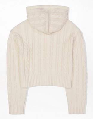 AE Cropped Cable Knit ZipUp Sweater