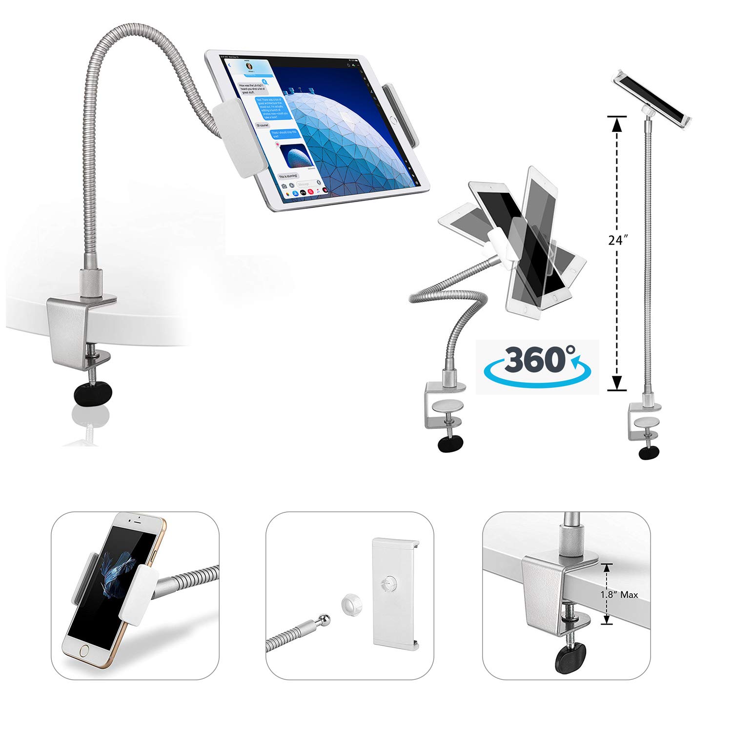 GooseneckArm360BedDeskLazyStandHolderMountForipadTablet Gooseneck Ipad Holder Argos the best ipad stand for video calls is the lamicall gooseneck ipad holder. That also makes it a one of our favorite features with the gooseneck floor stand is its included attached storage cradle, which can hold miscellaneous items such as a stylus, remote controls, or an external battery pack to keep your ipad charging With a cool. Gooseneck Ipad Holder Argos.
