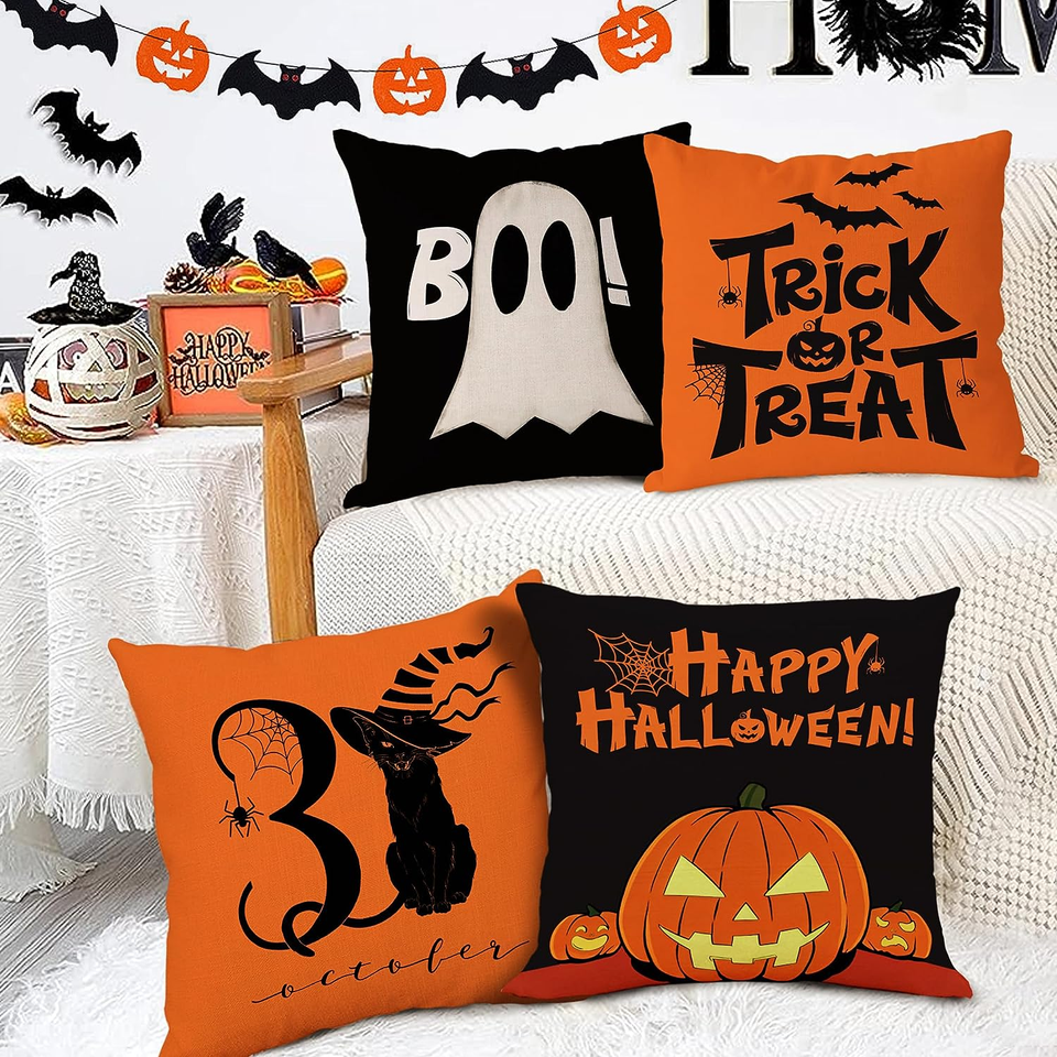 4Pc Halloween Decoration Pillow Covers 18X18 for Halloween Indoor