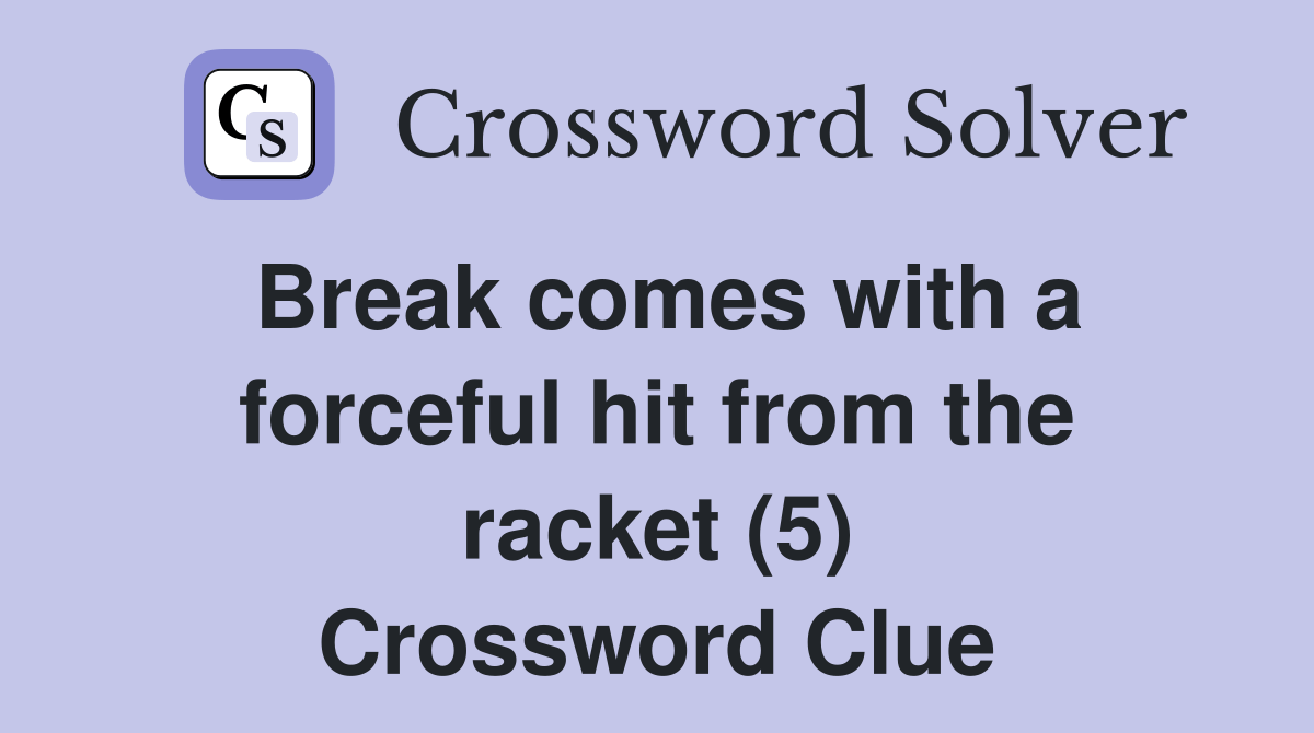 Break comes with a forceful hit from the racket (5) Crossword Clue
