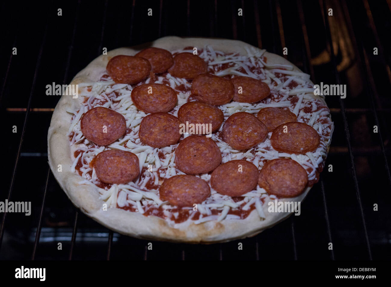 frozen meat Pepperoni cheese pizza oven shelf Stock Photo Alamy