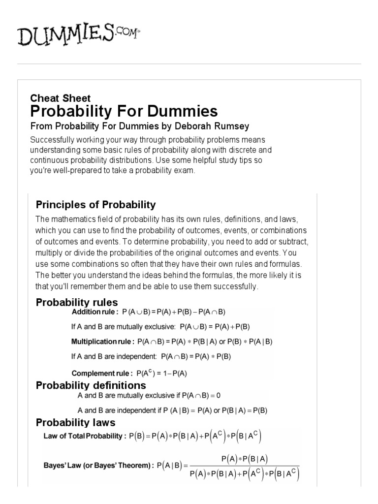 Probability for Dummies Cheat Sheet for Dummies Probability