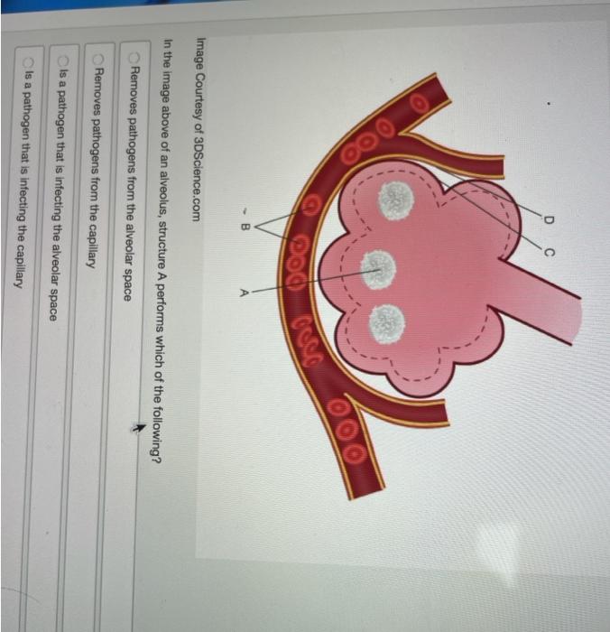 Solved Which of the following correctly identifies letter C[algebra Image Courtesy Of 3Dscience.com Image courtesy of 3dscience.com in the image above of an alveolus, what is the identity of the two visible tissue layers labeled c and d. D c 8 o 200 oso image courtesy of 3dscience.com in the image above of an alveolus, structure a performs which of the following? The main difference is that reaction b image courtesy of 3dscience.com. Image Courtesy Of 3Dscience.com.
