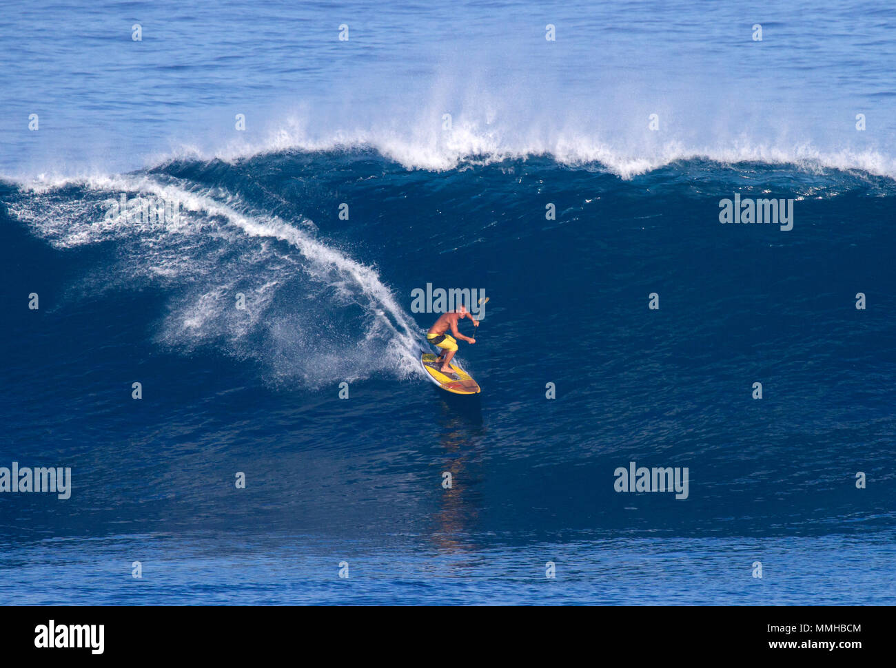 Surfing on a stand up paddleboard at Ho'okipa, Maui, Hawaii Stock Photo Paddle Board In Hawaii Psh is the first brand to specialize in. Read about the 7 best places to paddle board in hawaii from isle surf & sup. Even though big crashing waves are synonymous with being in hawaii, there is no shortage of calm, pristine water where you can get up on your sup board and explore. From pristine bays to majestic. Have. Paddle Board In Hawaii.