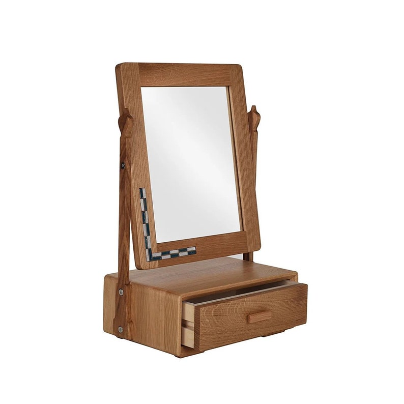 Wood Vanity Mirror on Stand With Jewellery Drawer. Natural Etsy UK
