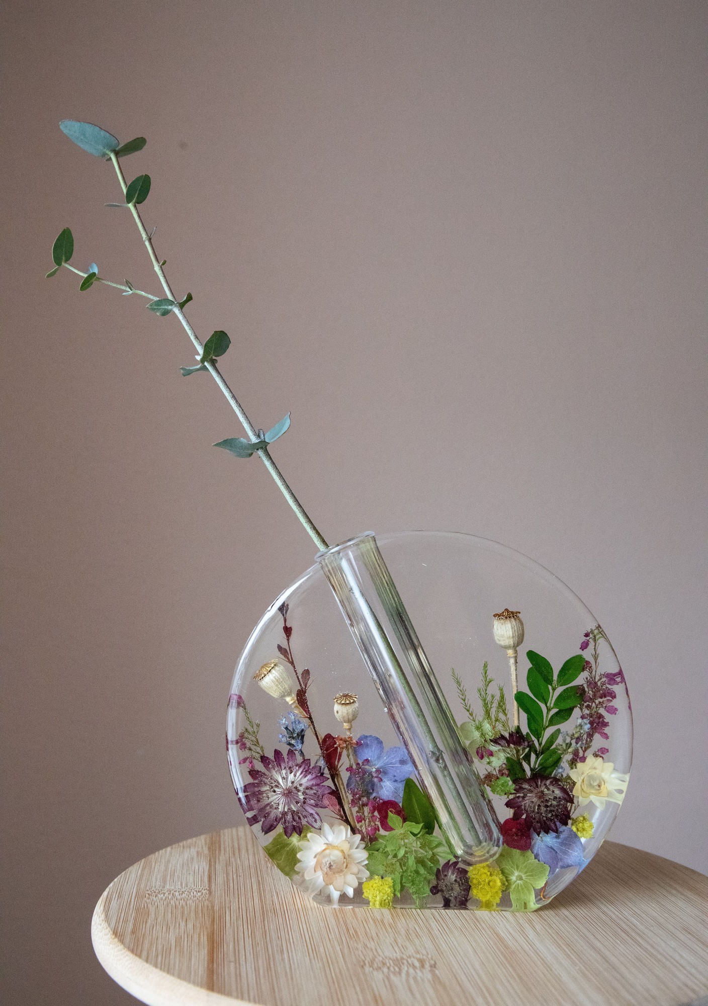 Resin vase with pressed flowers, home decor vase, handmade colorful