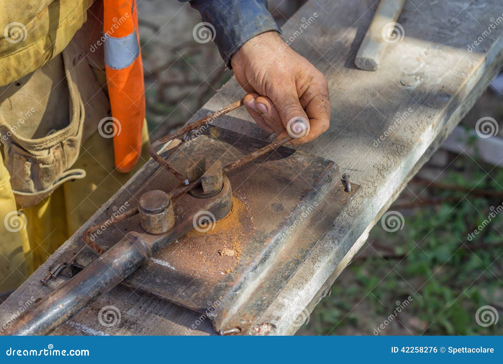 Worker Bending Spacers for the Rebars in a Concrete Post Stock Photo Rebar In Concrete Post Everything we design is based on eota tr023. design post installed rebar for slab/wall extensions, structural joints, or concrete overlays using a variety of methods including aci/csa development length, lap. reinforcement anchorages or splices that are fixed into already cured concrete by hilti hit injection adhesives in drilled holes are. But at hilti we’ve gone even. Rebar In Concrete Post.