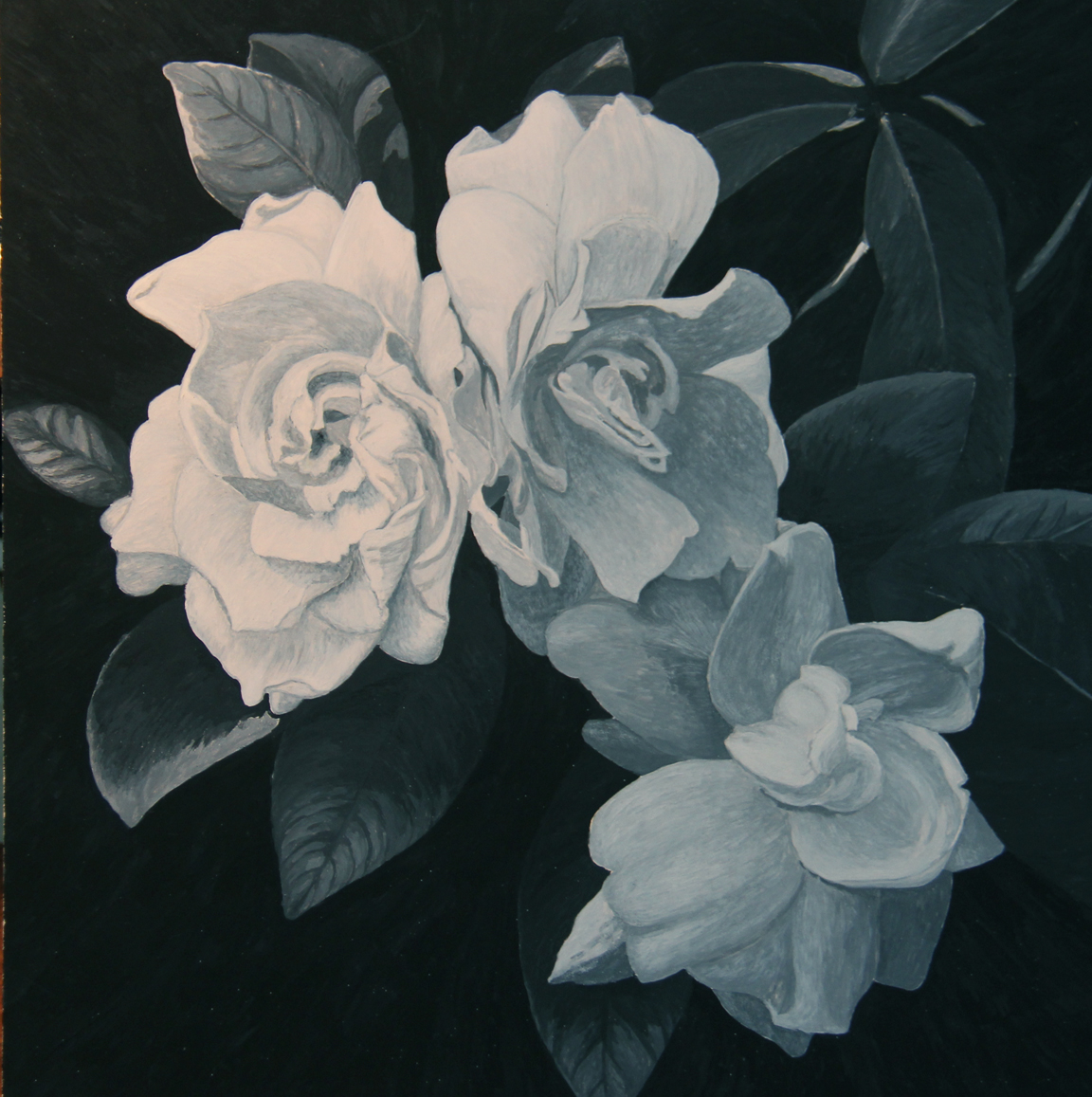 Total Illusion Studio Gardenia Trio. Egg Tempera and Oil. Finished