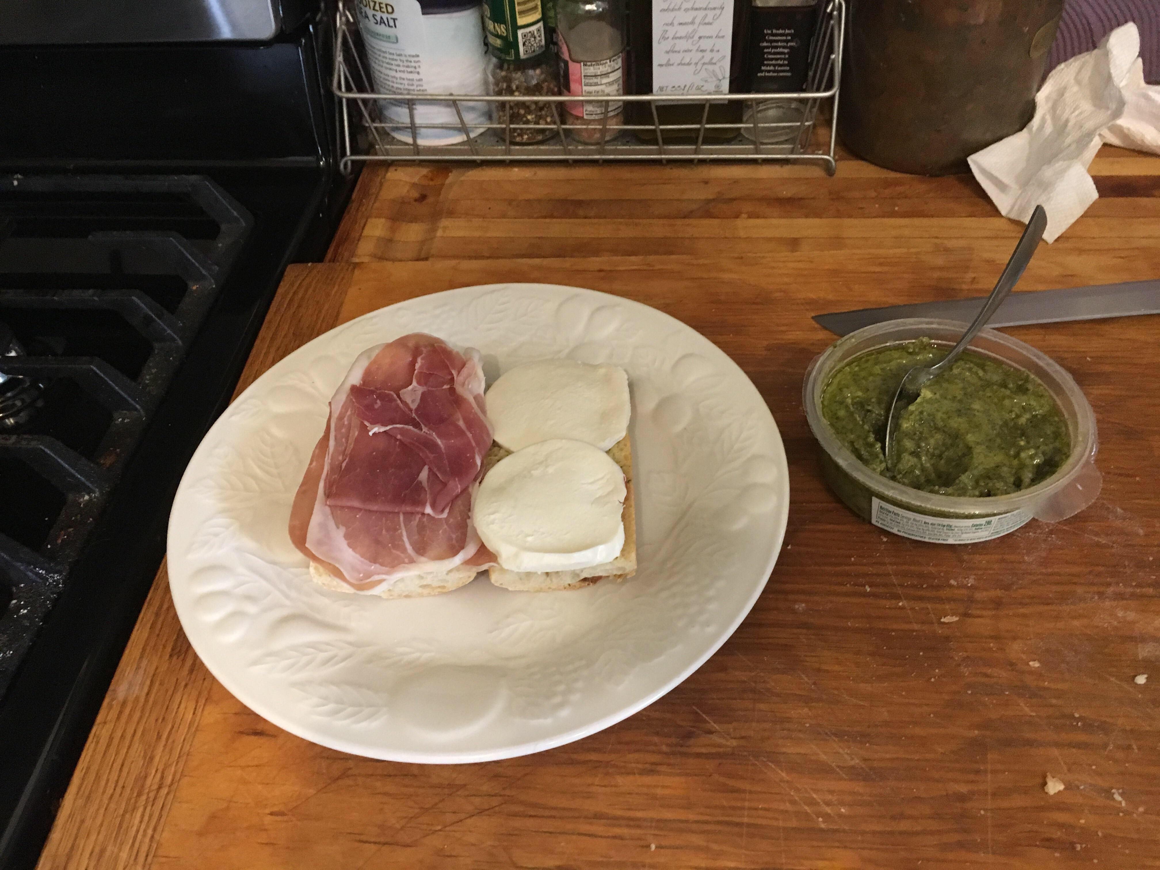 Prosciutto and Buffalo Mozzarella, with a hint of pesto aioli r