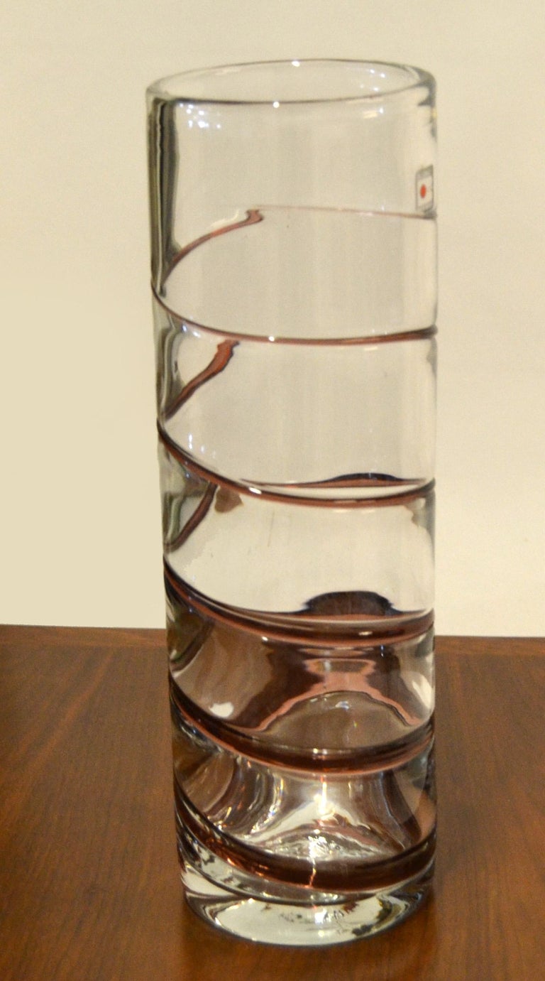 Original Blenko MidCentury Modern Handmade Transparent and Swirl Art Glass Vase For Sale at 1stDibs