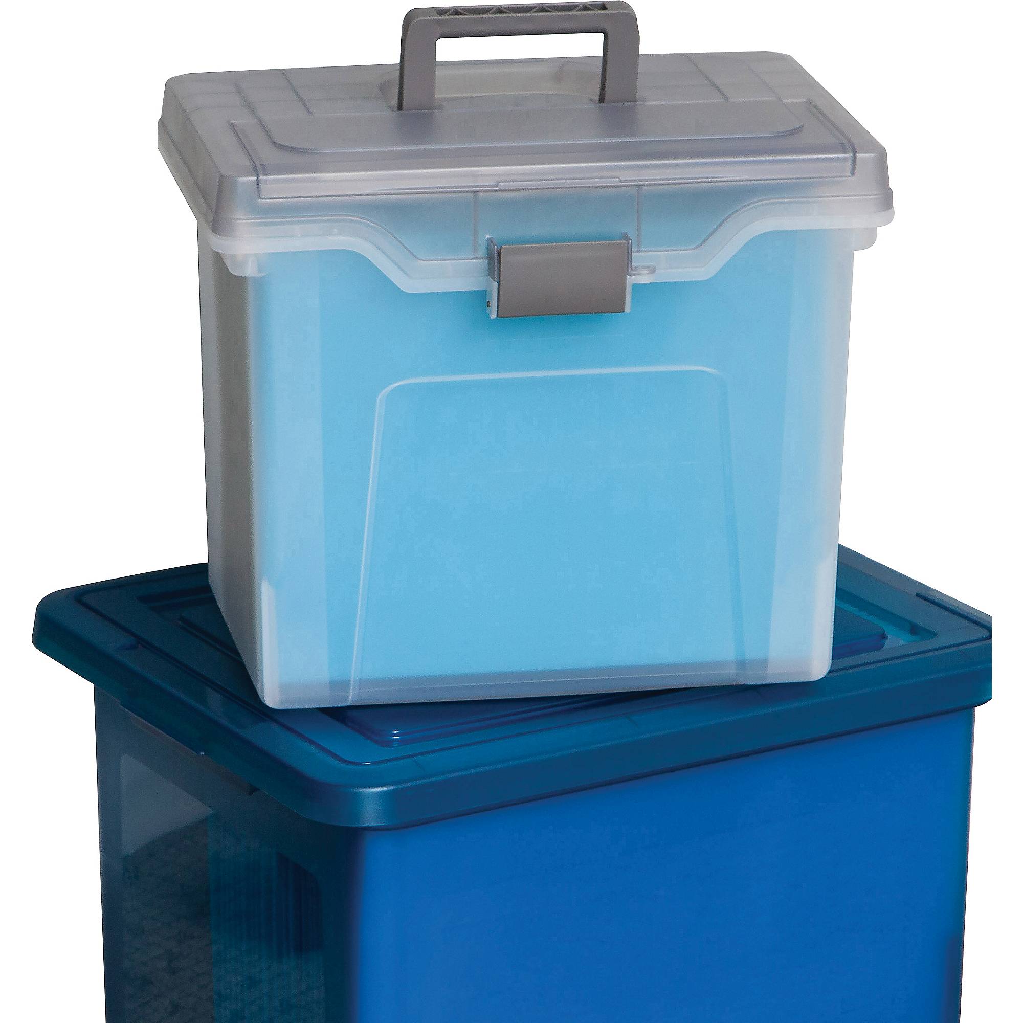 Staples® Portable File Box, Letter Size, Clear w/Blue Lid (110990) at Staples File Box With Lid Secure confidential documents inside this black plastic. Make organizing or moving documents simple and safe with a file storage box. Durable plastic construction offers water resistance when. Keep archived documents organized with this staples plastic file box. The versatile file box accommodates both letter and legal file folders. Get tru red™ hanging file box, snap lid, letter/legal size, clear (tr57620). Staples File Box With Lid.