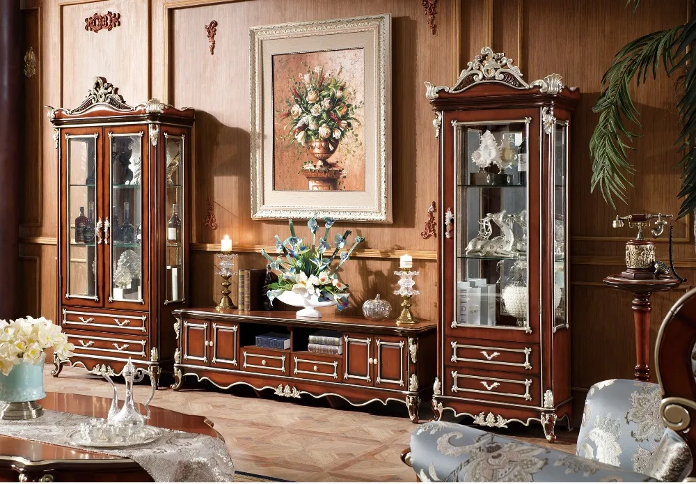 Classic Living Room Furniture And Tv Baroque Style Wine