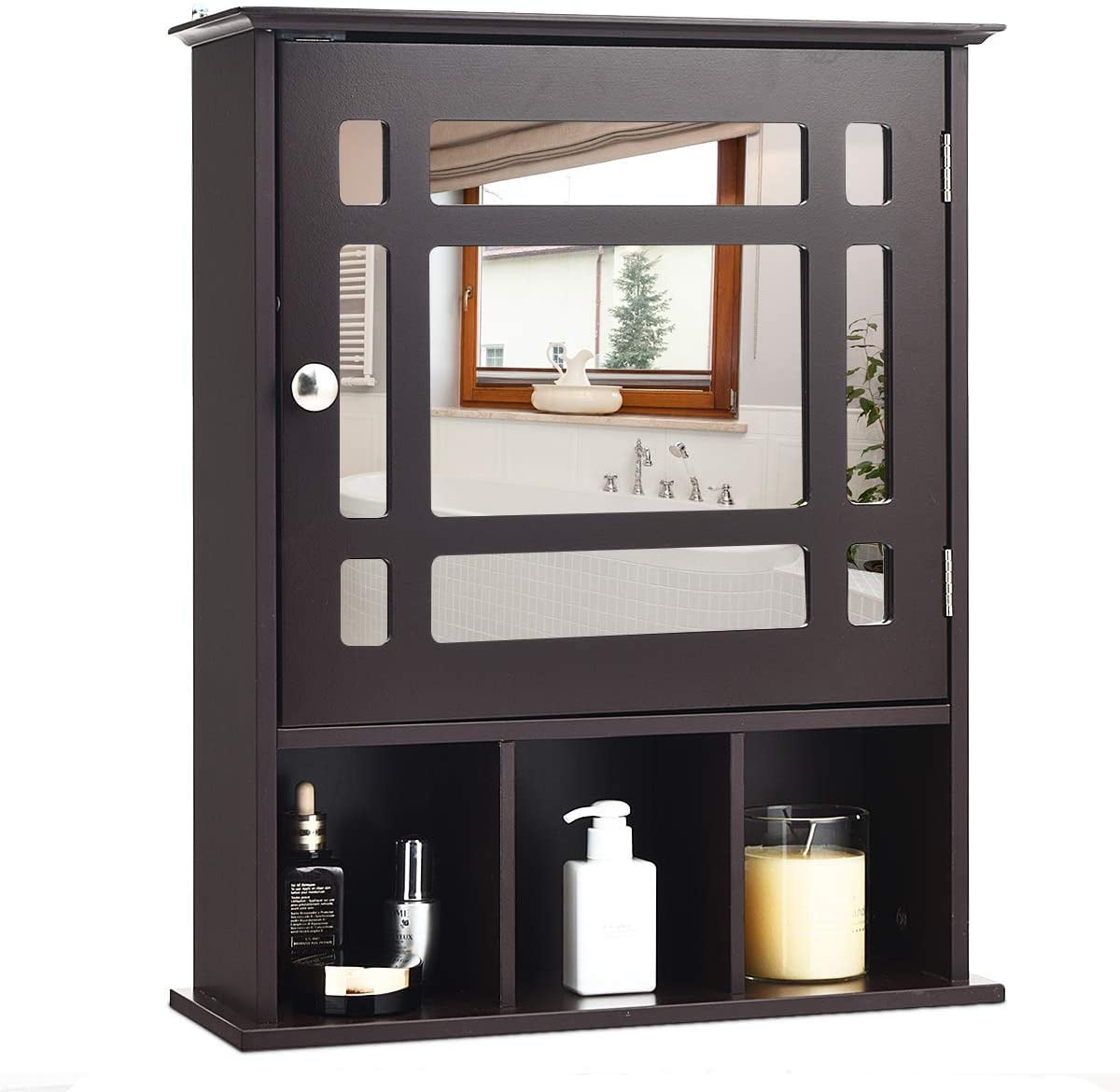 Ktaxon Wooden Bathroom Wall Medicine Storage Organizer