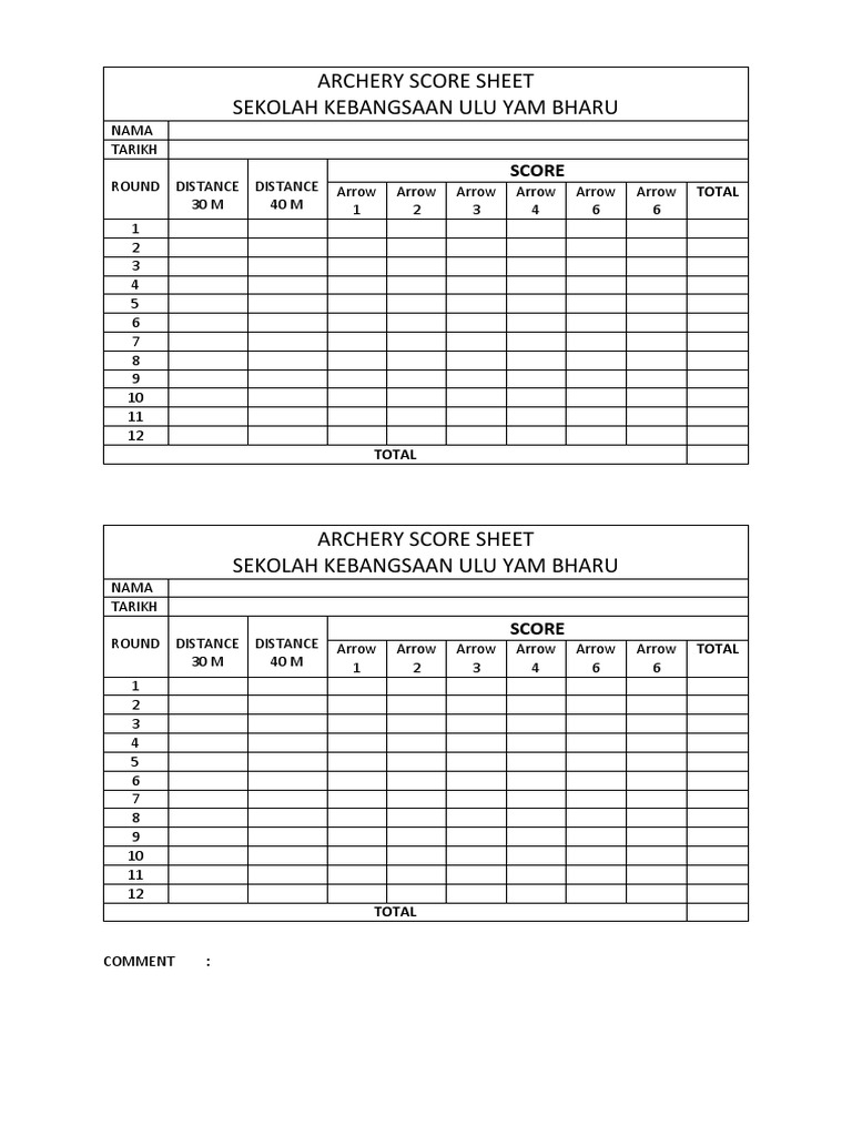 Printable Archery Score Cards Printable World Holiday Archery Score Sheets Printable · fill in score from left to right, scoring twelve. Archery is technical, from simply plotting arrows, to scoring and plotting elimination. archery score sheet pdf's and resources. students and athletes can use this printable archery score sheet for classes or shooting tournaments. Free to download and print. The links below open score sheets for archery rounds that. Archery Score Sheets Printable.