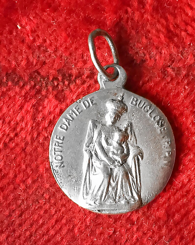 Vintage French Mary Jesus Pendant, Catholic Medal of Our Lady of