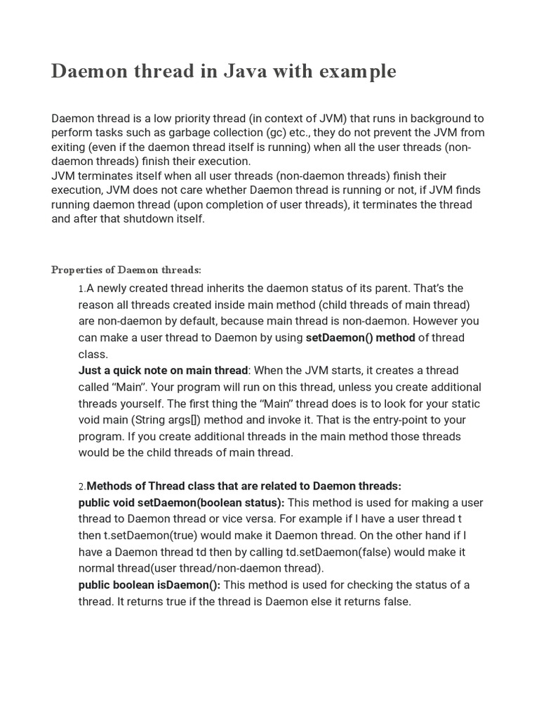 Daemon Thread in Java With Example Properties of Daemon Threads PDF