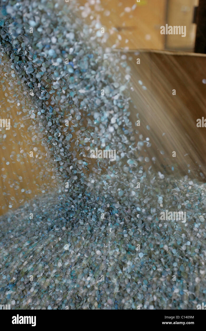Shower of recycled plastic appearing as pellets from recycling process Stock Photo Alamy