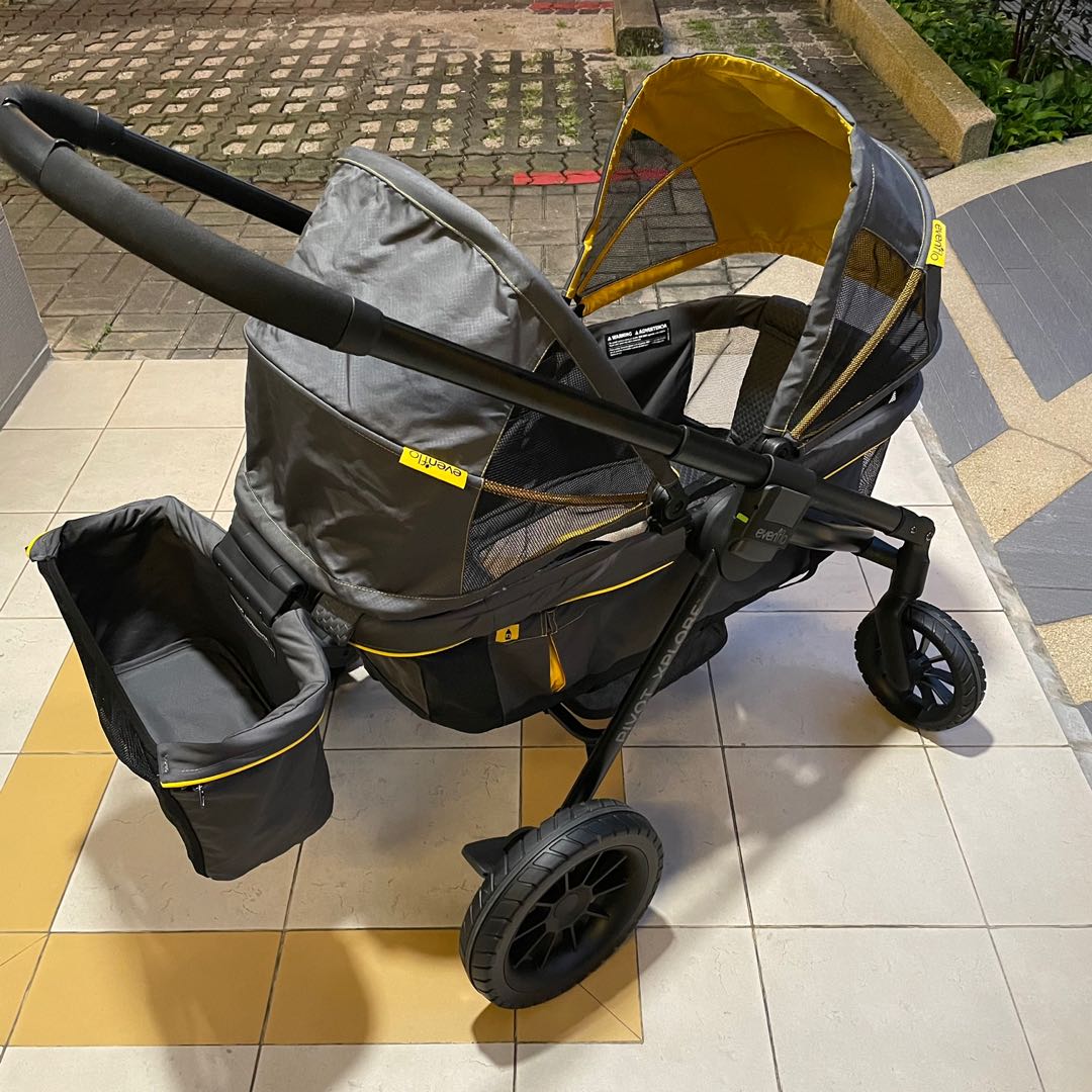 Evenflo Pivot Xplore Double Stroller Wagon, AllTerrain, Adventurer Evenflo Double Strollers The evenflo® pivot xpand™ modular travel system with litemax™ infant car seat easily transitions from a single to double stroller. Evenflo’s travel systems put it all together for you—infant car seat plus a stroller, all in one convenient and versatile package. Evenflo Double Strollers.