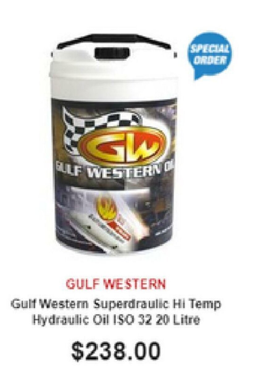 Gulf Western Superdraulic Hydraulic Oil ISO 46, 20 Litre Supercheap Gulf Western Hydraulic Jack Oil Iso 32 1 Litre a low viscosity, mineral based oil that is suitable for use in hydraulic jacks and hoists. hydraulic jack oil is suitable for use in standard hydraulic, jack and hoist systems. hydraulic jack oil is a mineral based oil suitable for use in hydraulic trolley and bottle type jacks as well as electric car hoists. mineral based. Gulf Western Hydraulic Jack Oil Iso 32 1 Litre.