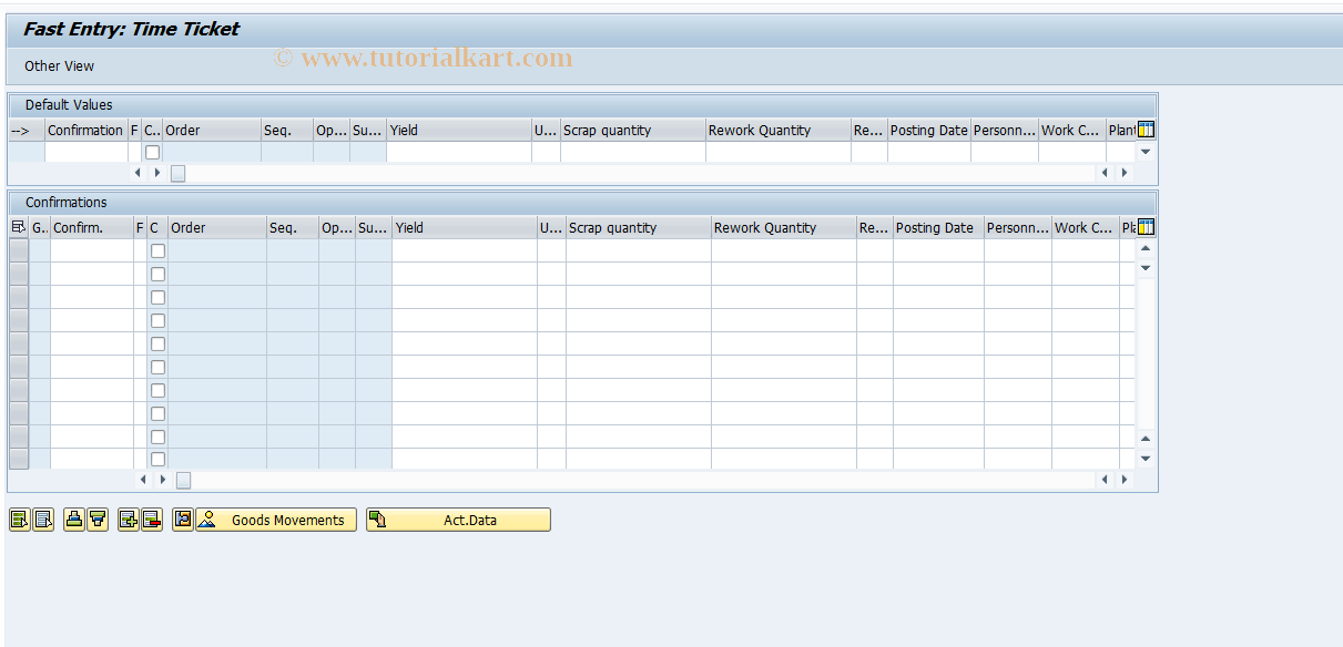 CO1V SAP Tcode Confirmation Fast entry of time tkt Transaction Code