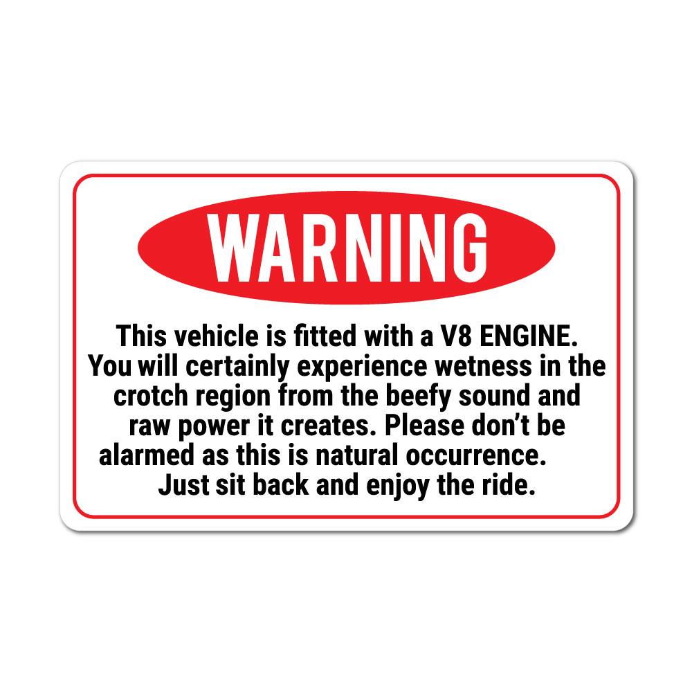 Warning V8 Funny Sticker Decal Funny Joke Luggage Rude Silly Car Laptop