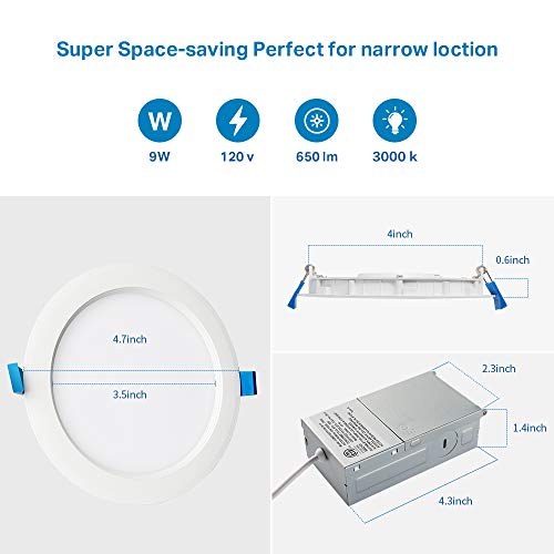 SAATLY LED Recessed Lighting 4 Inch, UltraThin Ceiling Lights with