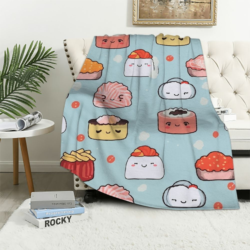 EastSmooth Sushi Blanket for Kids, Cartoon Sushi Pattern Blanket for
