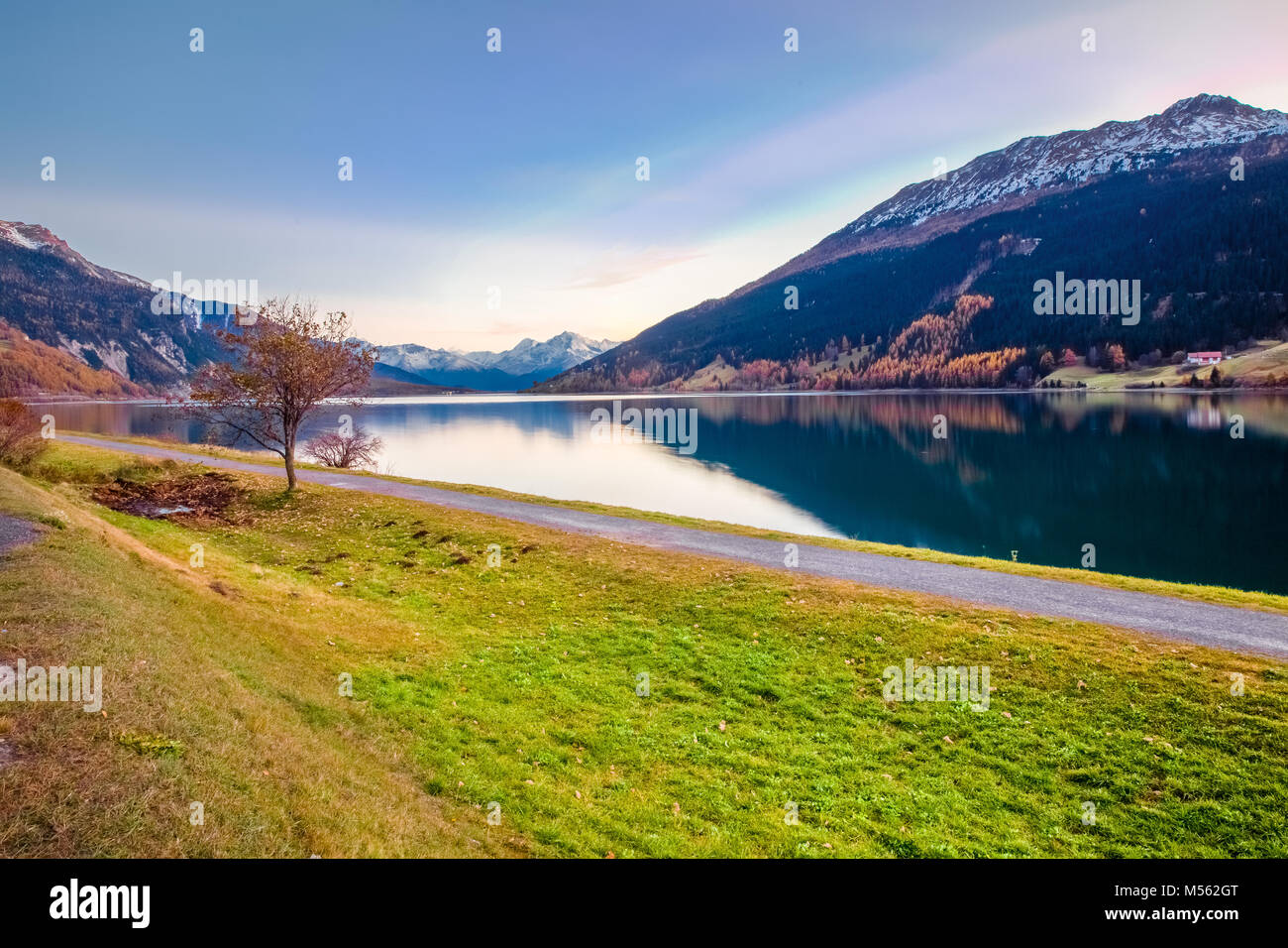 Sunset at Resia Lake Italian Alps Stock Photo Alamy