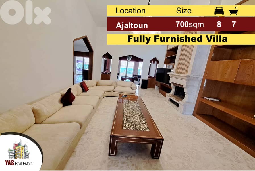 Villa for Sale in Ajaltoun HomePro Ajaltoun Villa For Sale Browse through the images of our 400 sqm villa for sale in ajaltoun in lebanon. Furnished villa for sale located in ajaltoun, size 918 square meters, built up on 1259 sqm land, surrounded with gardens and terraces, it's a 4 floor villa consists of 4 receptions, 3 kitchens, 14. A fully decorated villa in the hills of ajaltoun is available. Ajaltoun Villa For Sale.