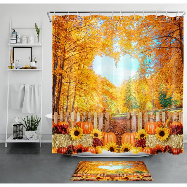 Autumn Forest Sunflower Shower Curtain Set Rustic Bathroom Decor with