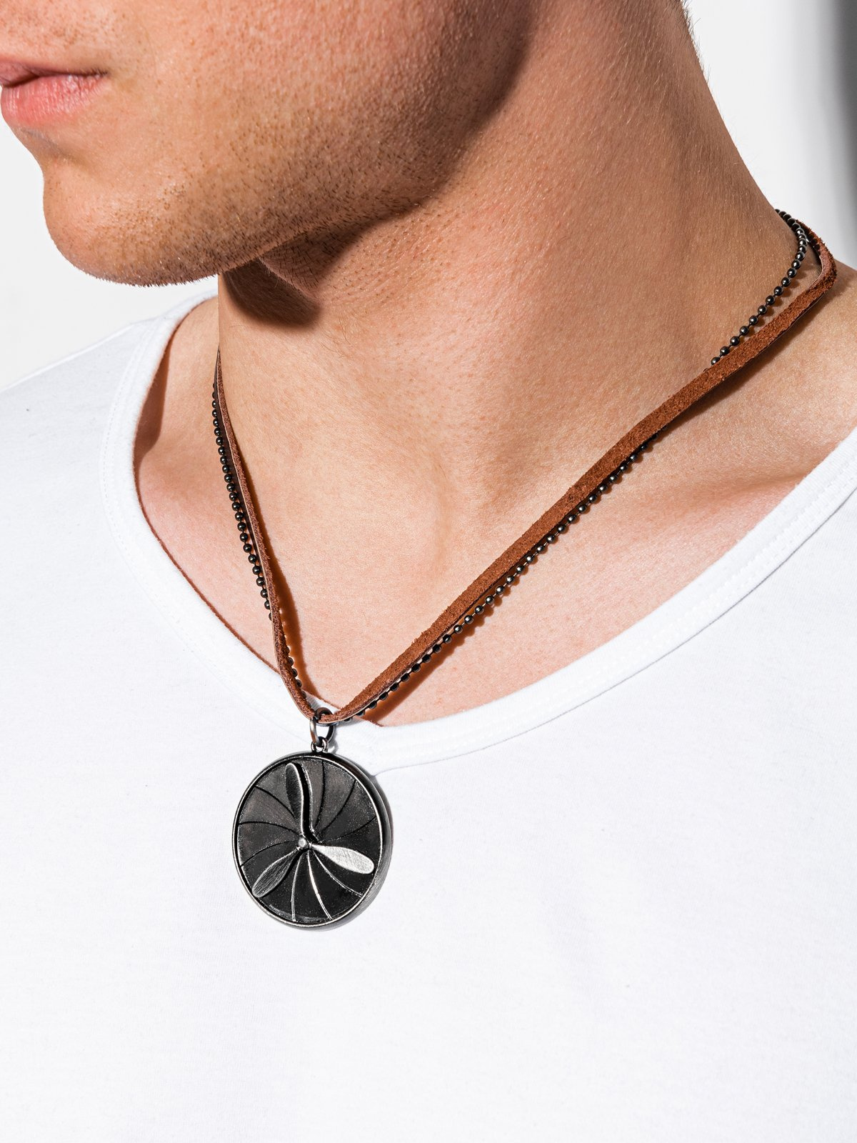 Men's necklace on the leather strap A360 MODONE wholesale Clothing Mens Leather Strap Necklaces A leather necklace is a real summer necklace! whether it be black leather, or brown. check out our mens leather strap necklace selection for the very best in unique or custom, handmade pieces from our chains. men commonly use leather necklaces as statement pieces, personal items, symbols, and lucky charms. Check out our leather strap necklaces selection. Mens Leather Strap Necklaces.