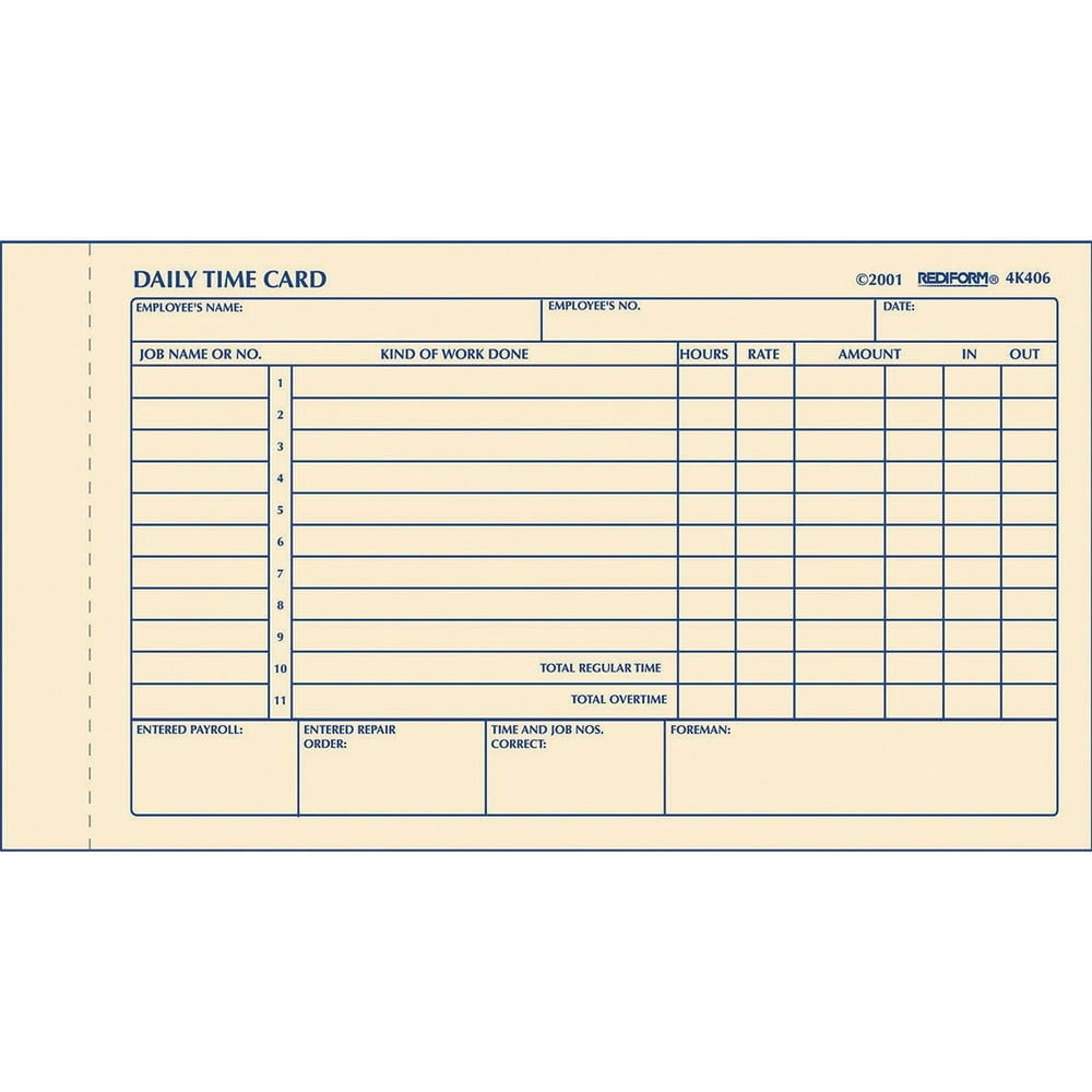 Rediform Daily Time Clock Cards, White, 100 / Pad (Quantity) Walmart