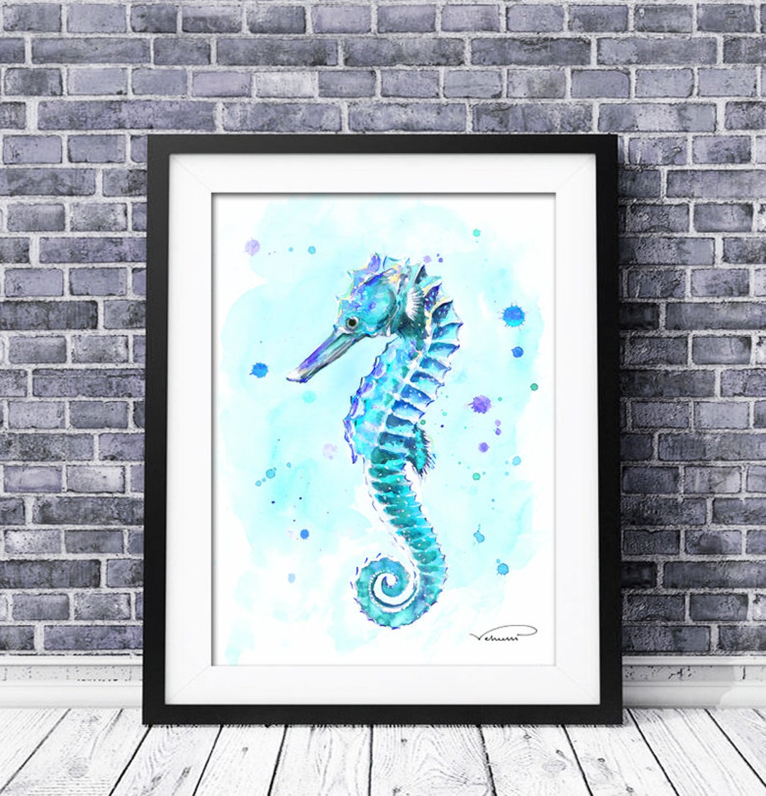 Seahorse Watercolor Print, Aqua Blue Seahorse Wall Art, Seahorse Blue Seahorse Wall Decor Made from high quality metal that deals with rust prevention and premium glass, hand painted with. buy wall art (colour: Bring the beautiful underwater world into your home with this stunning seahorse wall decor. a touch of the ocean: check out our seahorse wall decor selection for the very best in unique or custom, handmade pieces from. Blue Seahorse Wall Decor.