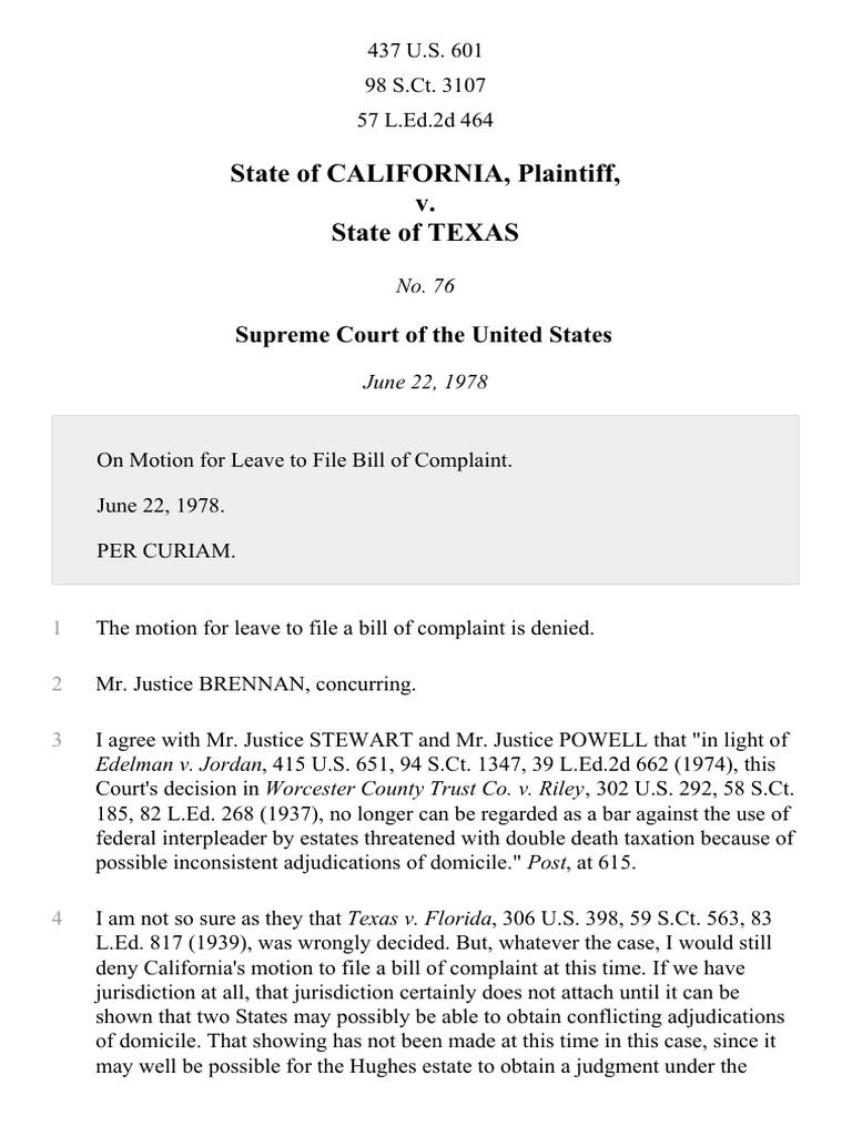California v. Texas, 437 U.S. 601 (1978) PDF Supreme Court Of The