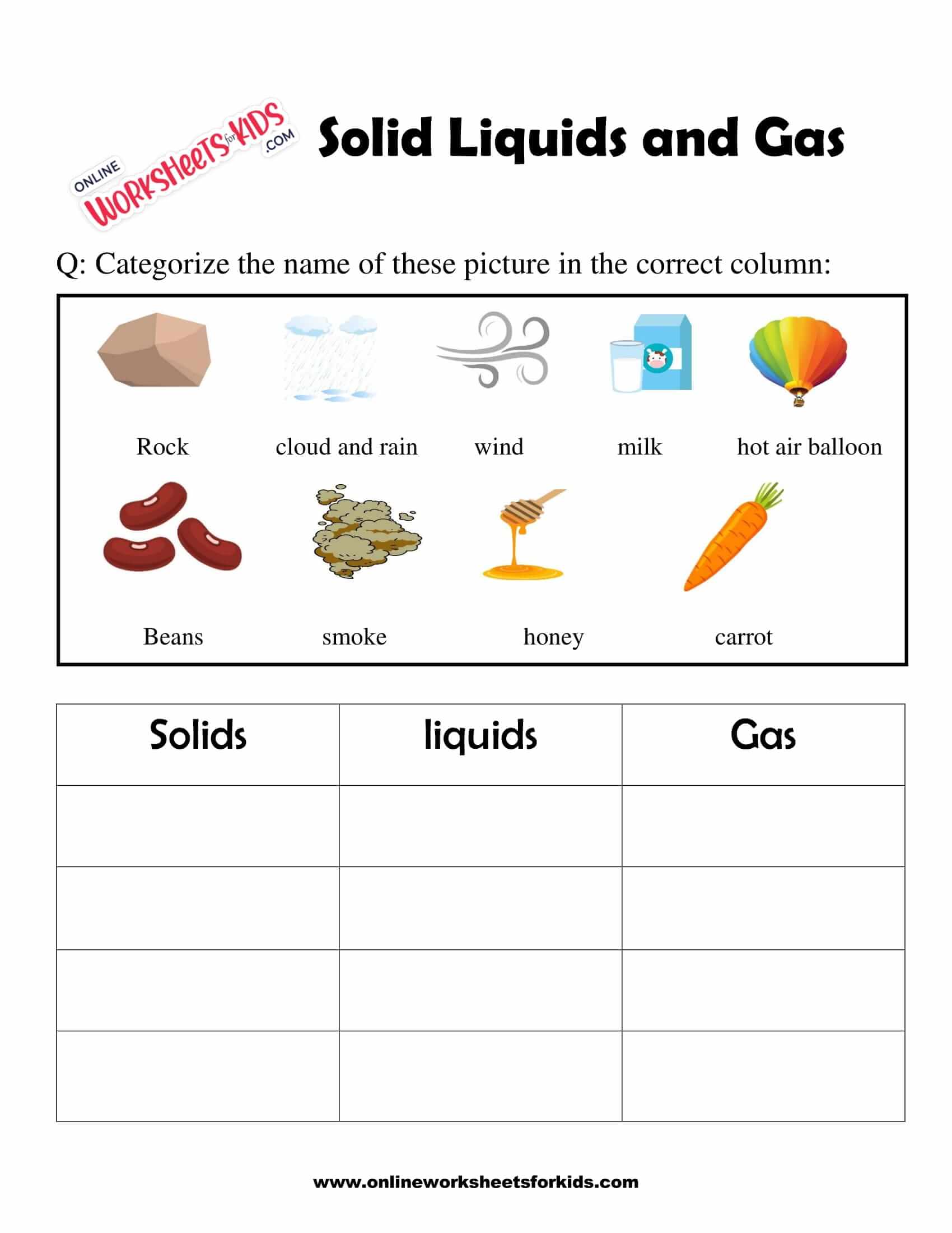 Solid Liquids And Gas Worksheet For Grade 15, 41 OFF