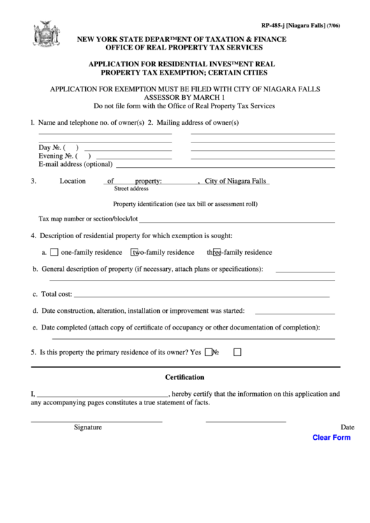 Fillable Form Rp485J Application For Residential Investment Real Niagara Falls Property Tax Records Below is an overview of the taxes residents and businesses may pay in the city of niagara falls: The city of niagara falls property record online system (“pros”) is an interactive assessment website that allows property owners to search. Does the city offer any assistance/rebate. The city of niagara falls property record online system (“pros”) is an interactive assessment website. Niagara Falls Property Tax Records.