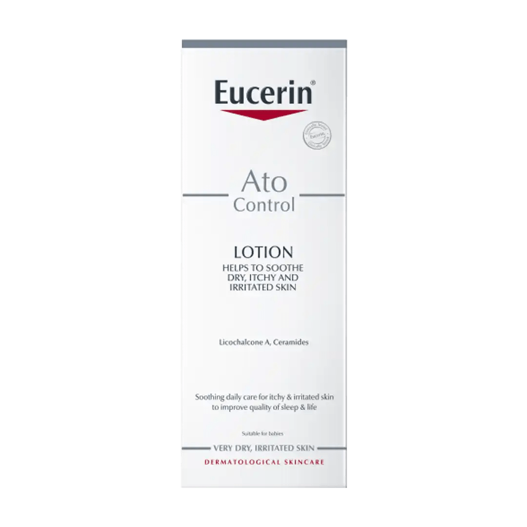 Eucerin Body Lotion Atocontrol . Eucerin’s atocontrol range helps alleviate the discomfort of dry and irritated skin and is compatible with atopic skin. Eucerin atocontrol body care lotion is clinically and dermatologically proven to be compatible with atopic skin in adults, children and babies from 3. Eucerin atocontrol body care lotion is clinically and dermatologically tested and proven to be compatible with atopic skin in adults, children and babies from 4 weeks. Eucerin atopicontrol soothing body lotion 12% omega 250ml is an emollient care for the face suitable for the very dry skins subject to redness.