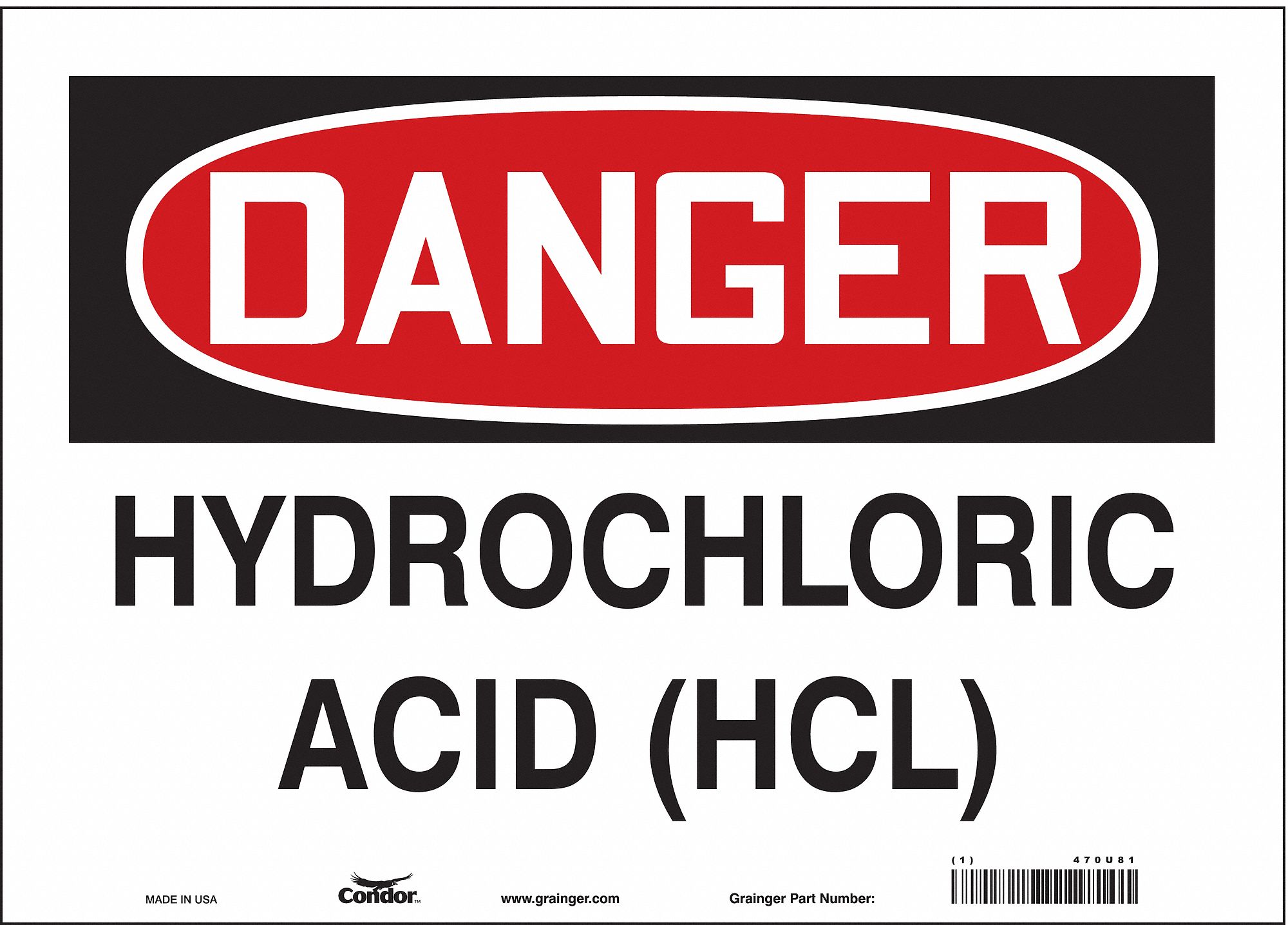 CONDOR Safety Sign, Sign Format Traditional OSHA, Hydrochloric Acid