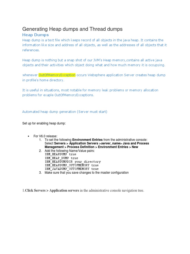 Generating Heap Dumps and Thread Dumps PDF Java Virtual Machine Java (Programming Language)