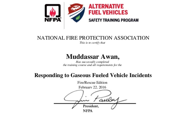 NFPA_AlternativeFuelVehicles_GAS_FIRE_certificate
