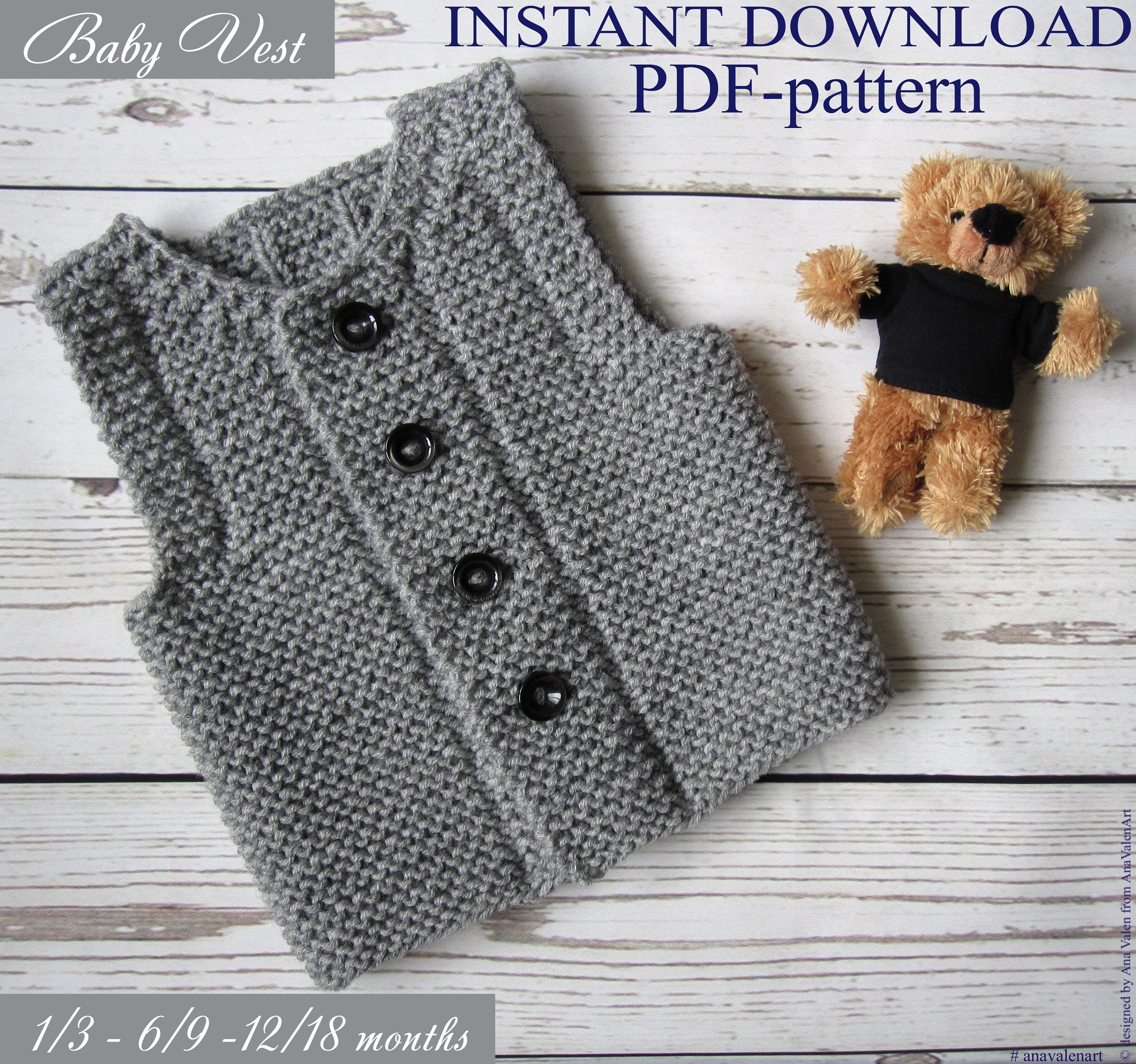 PDF pattern Knit baby vest DIY Baby waistcoat Instant Download Etsy