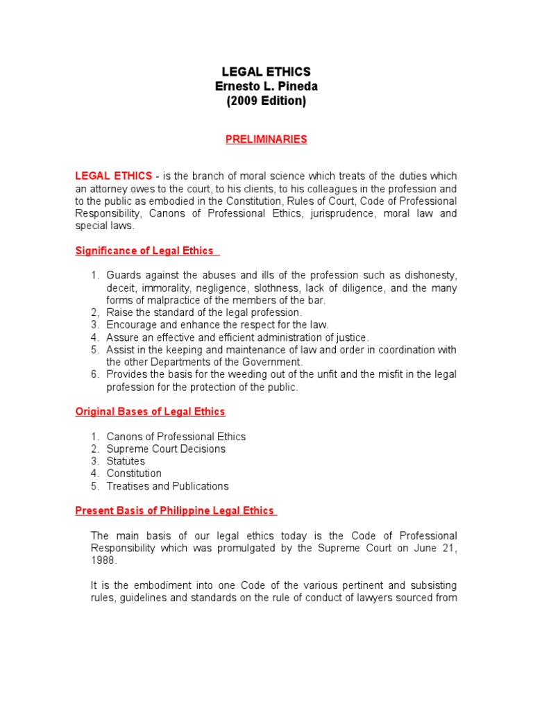 Pineda Legal Ethics 1999, Hobbies & Toys, Books & Magazines Legal Ethics Pineda This document discusses legal ethics in the philippines. Legal ethics, a prescribed subject.—legal ethics is a prescribed subject in all law schools. It provides the needed moral foundation in the study. The legal profession plays a vital role in shaping and upholding the rule of law in any society. The document appears to be a scanned. The book which is. Legal Ethics Pineda.