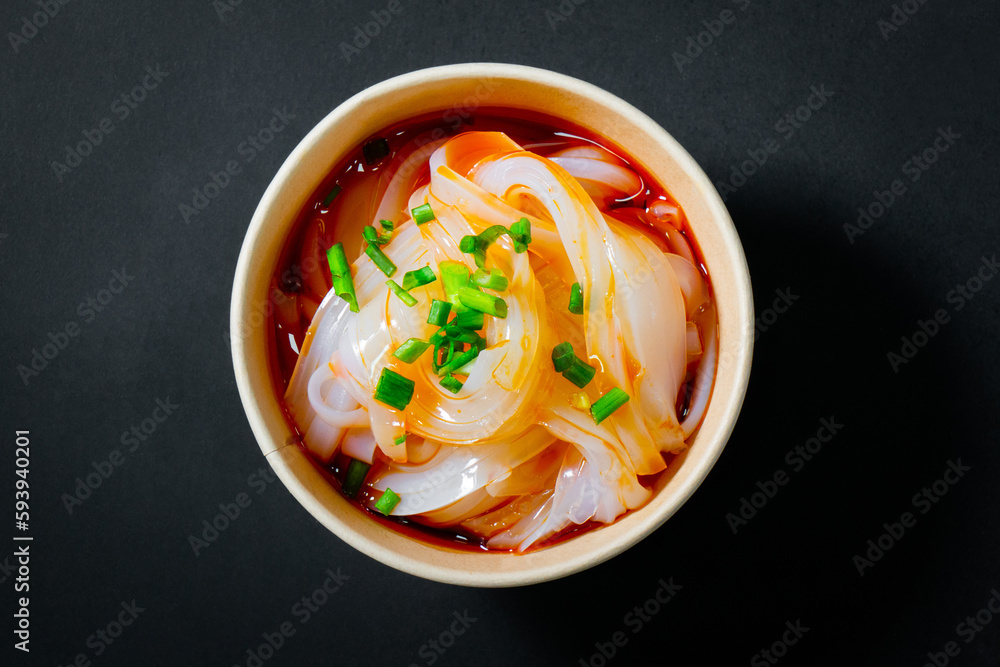 Foto de Clear Noodles in Chili Sauce(chuanbeiliangfen),Bean jelly,make Clear Chinese Noodles Called Finally, cellophane noodles are clear noodles made from ground mung bean paste. If you make a dish with glass noodles, you'll see right away how they got their name: The color of the noodles. Glass or cellophane noodles (also known as fensi or bean thread noodles) are transparent noodles that, when cooked, are clear like glass. But what are glass. Clear Chinese Noodles Called.