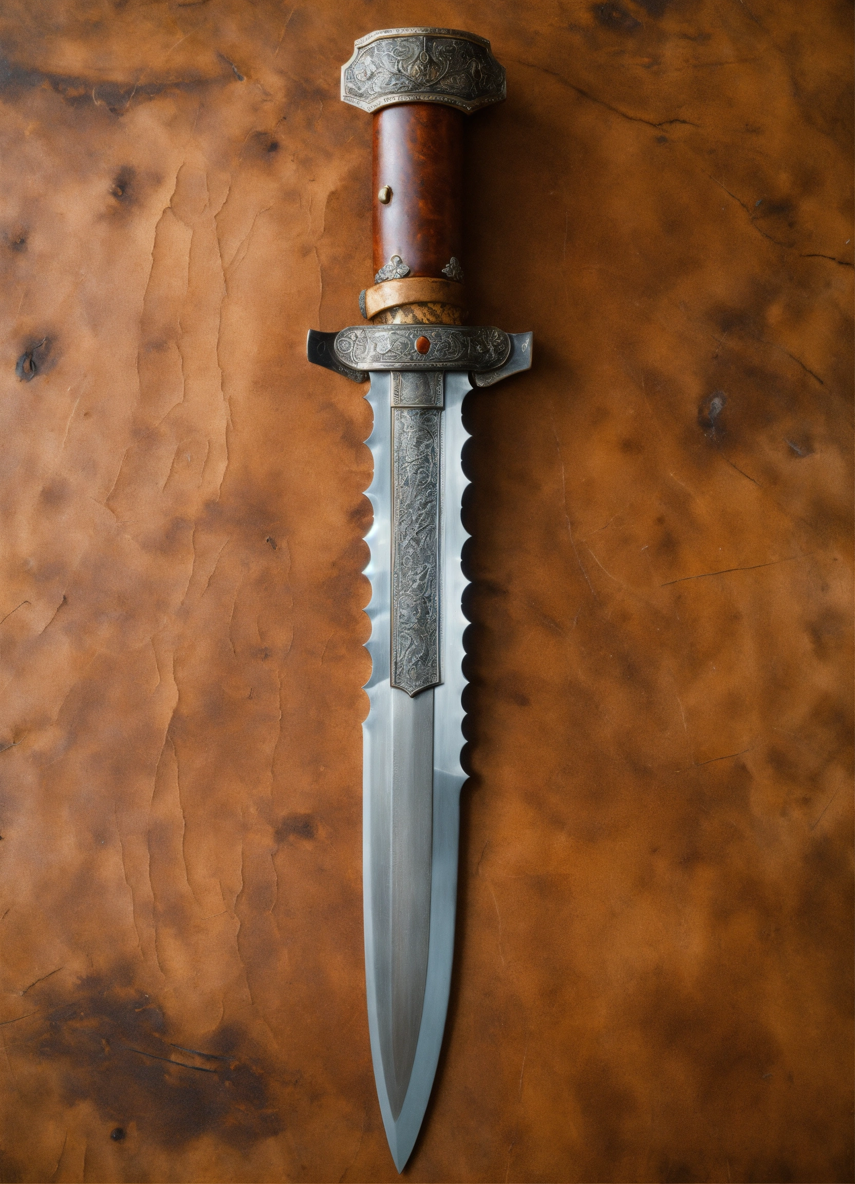 Lexica Serrated dirk made out of bone. hilt with weathered leather