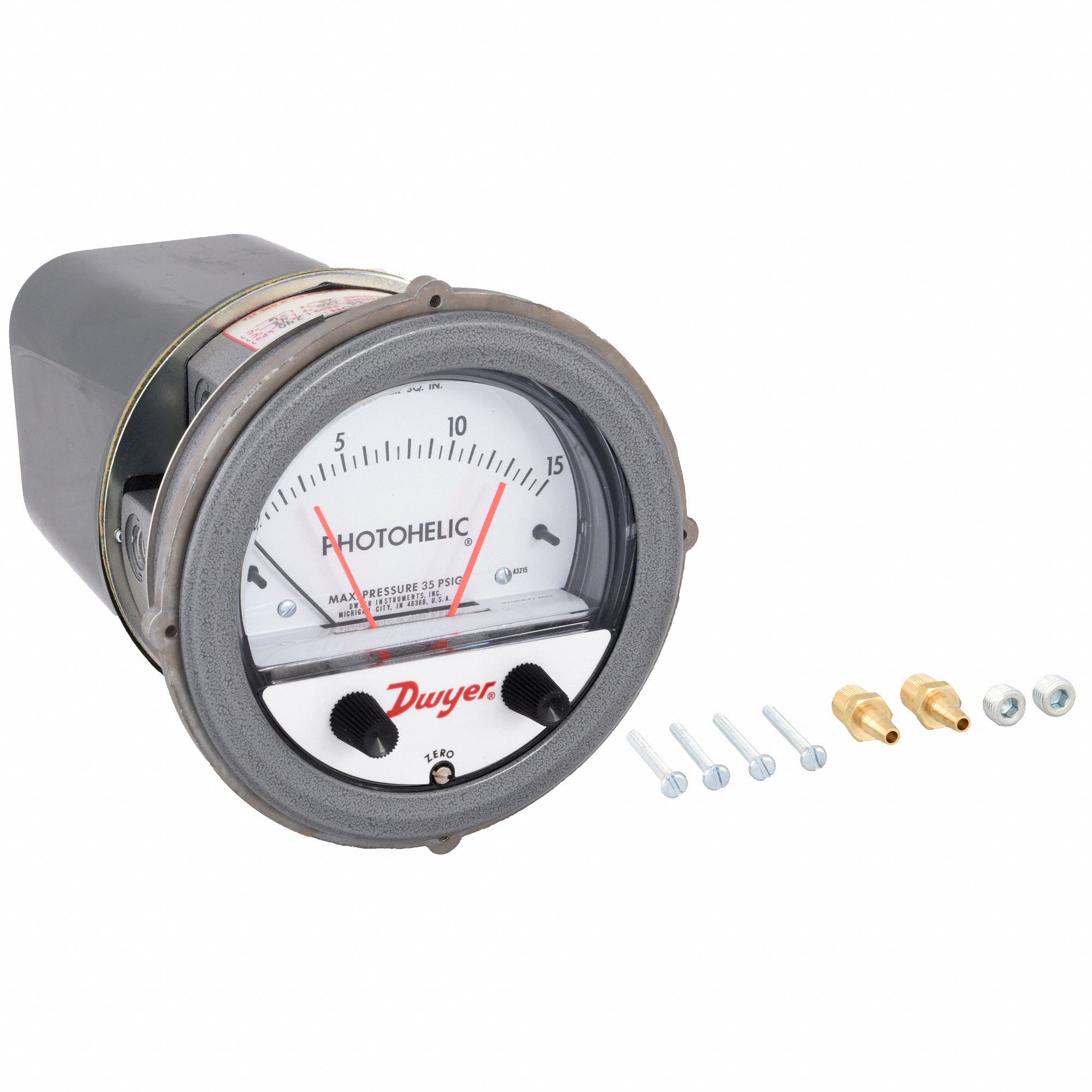 DWYER Differential Pressure Gauge & Switch 0 to 15 psi, SingleSide