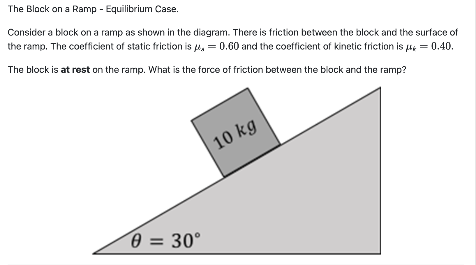 Solved The Block on a Ramp Equilibrium Case. Consider a